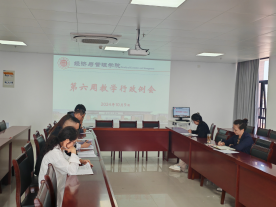 2024年10月9日,bat365在线中国官网登录入口在新行政楼725召开新学期第六周教学行政例会,会议由院长吴玲主持,院长助理张珊、实训中心主任及各教研室主任参加会议。