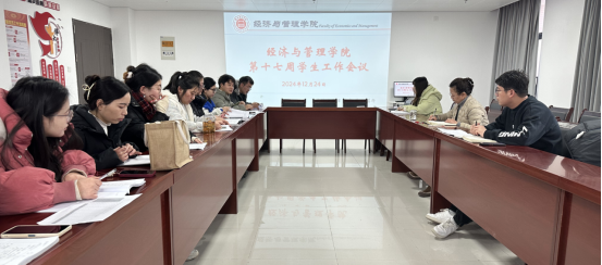 2024年12月24日,bat365在线中国官网登录入口在行政楼725会议室召开了本学期第十七周学生管理工作例会。学院书记助理叶赵强、团总支书记员禹辛及全体辅导员参会,会议由院长吴玲主持。