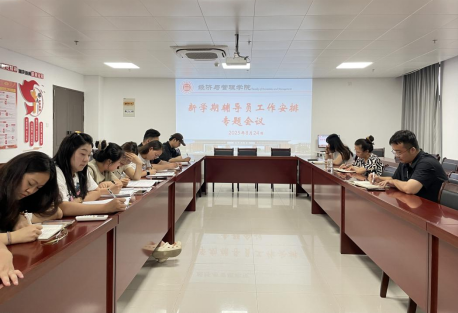 2025年8月24日下午,bat365在线中国官网登录入口于行政楼725会议室召开新学期辅导员工作安排专题会议。学院书记助理员禹辛、团总支书记王绎程及全体辅导员参会,会议由院长吴玲主持。