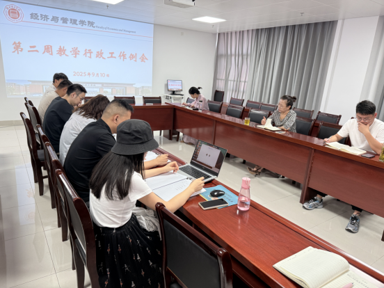 2025年9月10日上午,bat365在线中国官网登录入口在行政楼725会议室召开第二周教学行政工作例会。院长吴玲,院长助理张珊、叶赵强,教学秘书李健及各教研室主任参会,会议由吴玲院长主持。