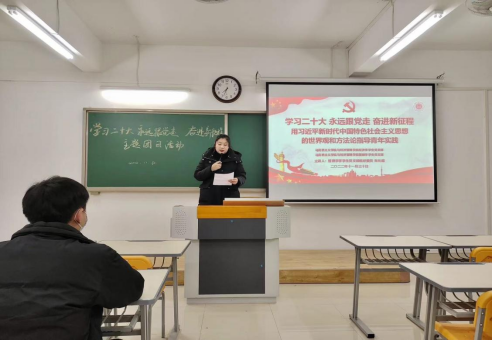 本次团日活动从习近平新时代中国特色社会主义思想世界观方法论的实践依据;习近平新时代中国特色社会主义思想世界观方法论的科学内涵;习近平新时代中国特色社会主义思想世界观方法论的丰富发展三个方面进行开展。我们要牢记习近平总书记对广大青年的寄语:“当代中国青年生逢其时,施展才干的舞台无比广阔,实现梦想的前景无比光明。”习近平总书记在党的二十大报告中给予青年的寄语:坚定不移听党话、跟党走,怀抱梦想又脚踏实地,敢想敢为又善作善成,立志做有理想、敢担当、能吃苦、肯奋斗的新时代好青年,让青春在全面建设社会主义现代化国家的火热实践中绽放绚丽之花!