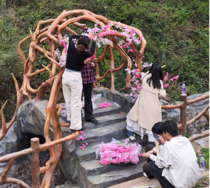 项目充分发挥数字技术优势,提供短视频制作、直播带货等一站式线上服务。学生主播开展的直播活动总播放量超80 万次,成功吸引南京、合肥等周边城市年轻客群,推动民宿销售额近 30 万元,在抖音平台荣登收藏榜第二位、好评榜第三位。团队还推动民宿业态创新,打造 “小火车餐厅”“林间茶吧” 等特色设施,带动 30 余名村民就业增收,并通过多平台联动营销、地理标志认证联动计划,进一步提升民宿市场影响力。同时,项目团队通过建立数字化运营数据监测体系,实时分析游客偏好、市场动态等信息,为霍山民宿产业精准定位目标客群、优化产品供给提供数据支撑。此外,团队还定期开展民宿从业人员数字化技能培训,提升当地从业者的运营能力,为产业可持续发展注入内生动力。