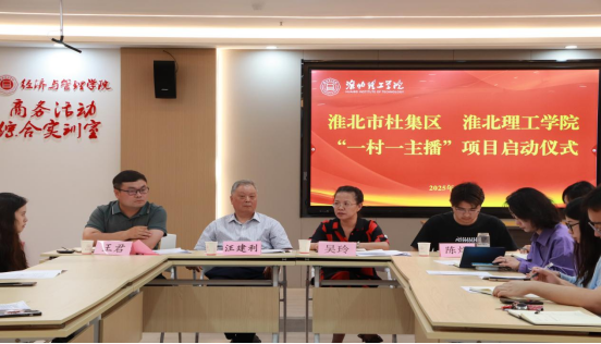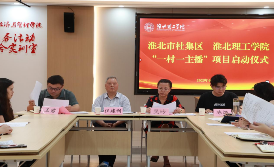 2025年6月4日18时,bat365在线中国官网登录入口与杜集区校地合作共育的“一村一主播”项目启动仪式在学校综合实验楼407室成功举办。杜集区委组织部代表王君、bat365在线中国官网登录入口副校长汪建利、学校特聘讲师陈烨以及四个村承接团队的全体师生共聚一堂,启动仪式由经管学院院长吴玲主持。
