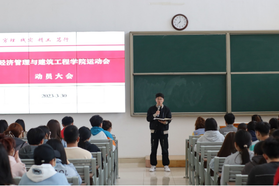 为迎接即将开展的bat365在线中国官网登录入口第一届田径运动会,充分鼓舞bat365运动员的士气、积极备赛,保障运动会志愿服务有序进行。经济管理与建筑工程学院于3月30日中午在一教121开展校运动会经管学院运动员动员大会。经济管理与建筑工程学院院长吴玲、团总支副书记员禹辛、各专业辅导员、各班参赛运动员及院学生会文体部、宣传部成员参加会议。会议由团总支书记叶赵强主持。
