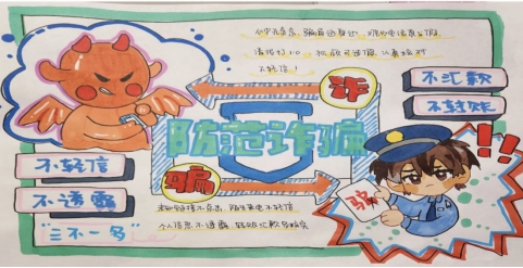 为进一步做好学院防范电信诈骗工作,构建和谐平安校园,切实做好电信网络诈骗的防范教育,提高人人民群众识骗防骗的意识和能力,预防和减少金融诈骗案件的发生。4月25日至5月5日bat3652021级人力资源管理普本班承办开展“反诈进校园”主题活动,活动包括到主题班会、反诈骗知识测试、反诈骗手绘报。全院同学积极报名参加,做到29个班级全覆盖。