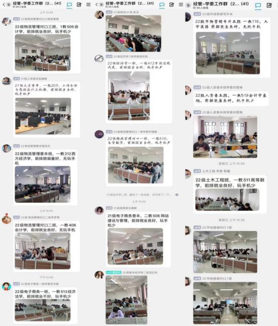 为让各班级辅导员和班主任充分了解班级班风和学风情况,5月15-18日辅导员和班主任走进班级,关注学生的学习情况,上课纪律,玩手机和睡觉的现象,特别关注上学期挂科的同学,根据班级实际情况制定并且实施班级管理制度,让各班党员以及学生干部起到带头作用,以便培养学生的自我管理能力。为了加大监管力度,将学风建设落到实处,bat365建立了“经管学生学习委员交流QQ群”,各班学习委员积极响应,在课前/课间将本班级上课情况拍照发到群里,如实反馈班级实际情况,便于辅导员和班主任对班级监督管理,同时也增强了学生自我约束的意识和能力。最后,5月19-23日辅导员和班主任再次进入班级查看督导效果,根据学生班级反馈情况,结合班级自身发展,完善班级管理制度,建立完整的学生自我管理体系。