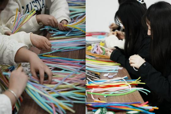 活动以“手工+心理”为创新理念,将艺术疗愈融入心理建设。现场布置温馨雅致,五颜六色的扭扭棒、剪刀、胶水等材料整齐摆放,老师与学生志愿者提前布置场地,营造出轻松愉悦的创作环境。活动开始前,本次活动主持人做出了简短的心理引导:“扭扭棒看似简单,却能通过弯曲、缠绕、组合,变幻出无限可能。就像我们的情绪与内心世界,有时需要一个出口,去表达、去释放、去重塑。”