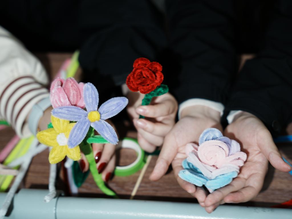 活动结束后,每个同学可以带着自己的作品合影留念,大家互相分享着自己的作品,同时诉说着自己有趣的想法。活动指导老师表示“我们希望通过非语言、非评判性的艺术表达形式,降低学生对心理问题的防御心理,让心理健康教育‘润物细无声’。扭扭棒虽小,却承载着情感的温度与成长的力量。”