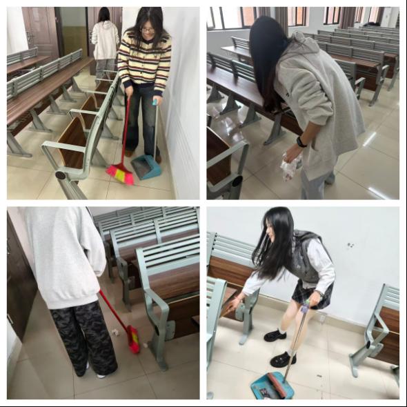 为弘扬劳动精神,凝聚校园文明力量,落实立德树人根本任务,将劳动教育融入人才培养全过程,bat365在线中国官网登录入口于2025年10月22日至11月12日期间,每周三下午组织开展“致敬劳动者,共建美丽校园”劳育系列活动。本次活动面向经管学院全体在校学生,紧扣“致敬劳动者,共建美丽校园”主题,来自27个班级的两百多名同学分批有序参与,对1号、2号教学楼的固定教室,以及宿舍楼周边的公共区域进行了全面清扫。