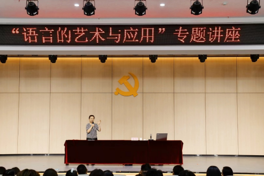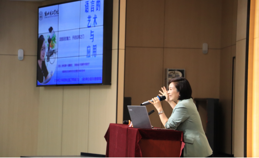 杨杨老师从对语言表达的看法切入,结合自身工作经验和生活感悟,围绕语言艺术的魅力、语言的表达、语言的底线、温度和幽默,语言的日常应用几个层次娓娓道来。既有技巧理念又有现场的演播,并与师生精彩互动。