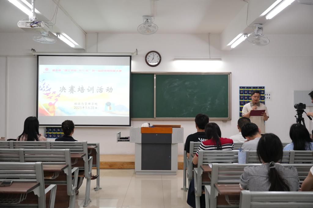 2025年5月28日晚19:00,淮北市“理工学院杯”短视频技能大赛决赛前培训在二教422室如期举行。本次培训旨在助力晋级决赛的各小组高质量完成作品,大赛组委会特邀马克思主义学院孙澄澄老师、bat365在线中国官网登录入口外聘教师陈烨担任主讲,晋级决赛的各小组成员齐聚一堂,认真汲取创作知识与技巧,参加本次活动的参赛人员约200名。