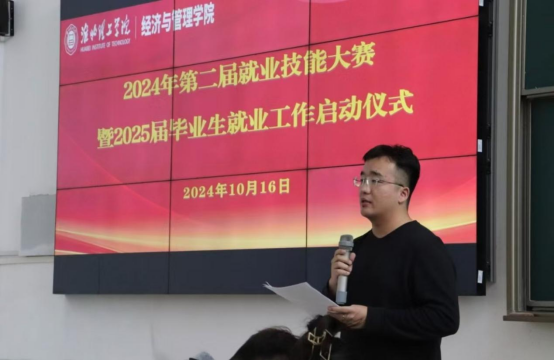 书记助理叶赵强在动员讲话中提出要高度重视此次技能大赛,要加强自身能力的培养和提升。不仅要在专业知识上精益求精,还要注重发展一些综合素质和技能,如沟通能力、团队合作能力和领导能力。同时要求辅导员抓好高校毕业生就业工作,帮助学生了解就业形势、调整就业预期、掌握就业政策、提升就业能力。