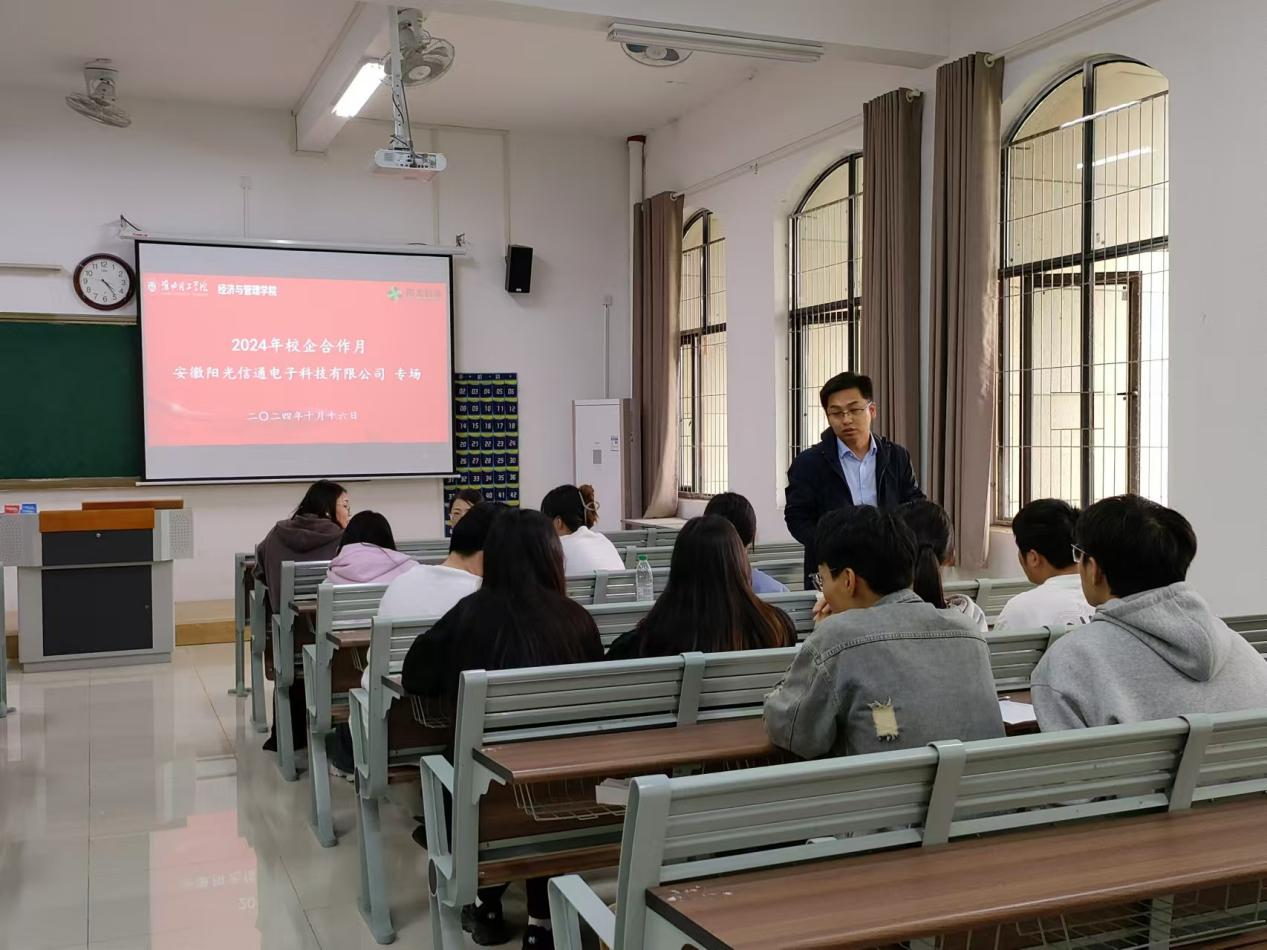 在校企合作月的启动仪式上,首场企业进学院的校园宣讲和双选活动——安徽阳光信通电子科技有限公司专场活动成功举办,学院300余名师生参加本次专场活动。