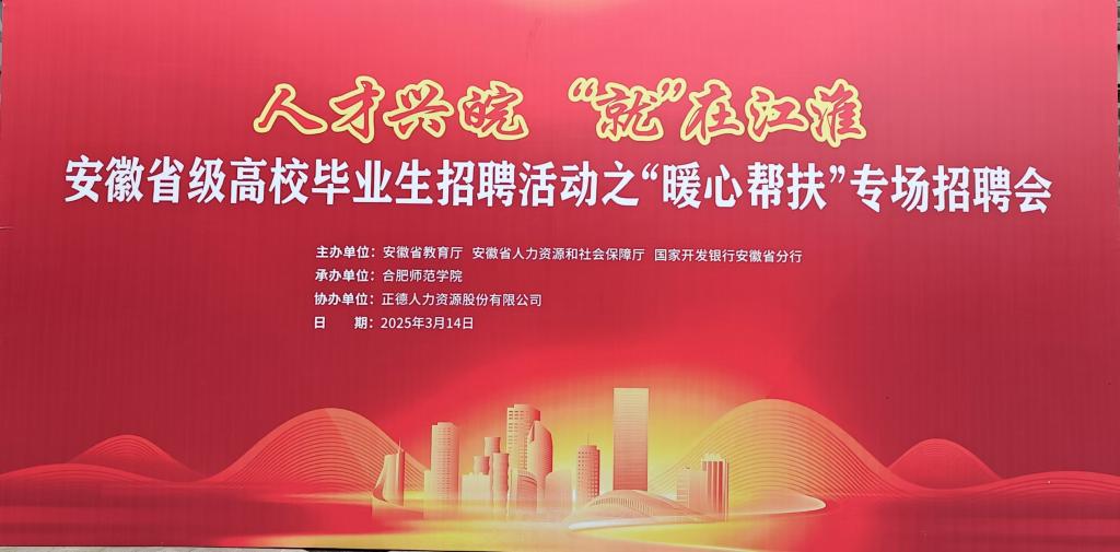 2025 年 3 月 14 日,bat365在线中国官网登录入口组织学生前往合肥师范学院,参加由安徽省教育厅、安徽省人力资源和社会保障厅、国家开发银行安徽省分行联合主办,合肥师范学院承办,正德人力资源股份有限公司协办的 “人才兴皖,‘就’在江淮——安徽省高校毕业生招聘活动之‘暖心帮扶’专场招聘会”。